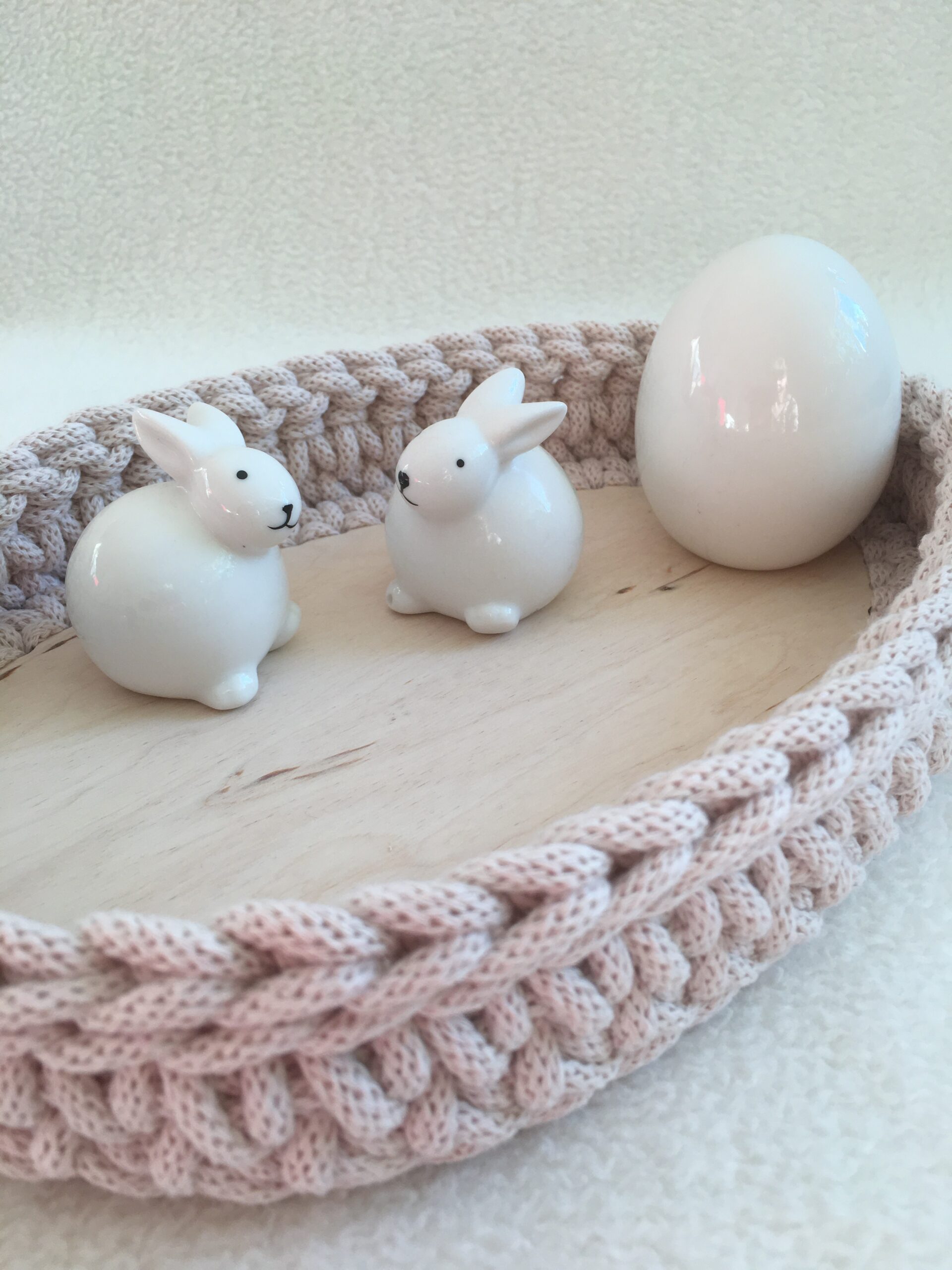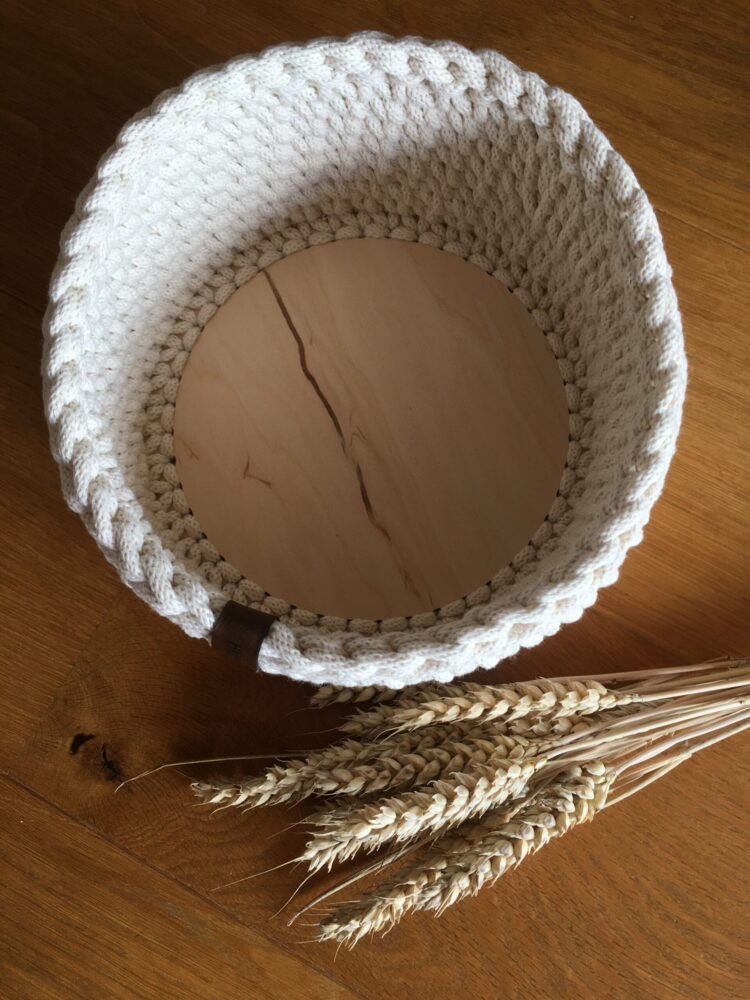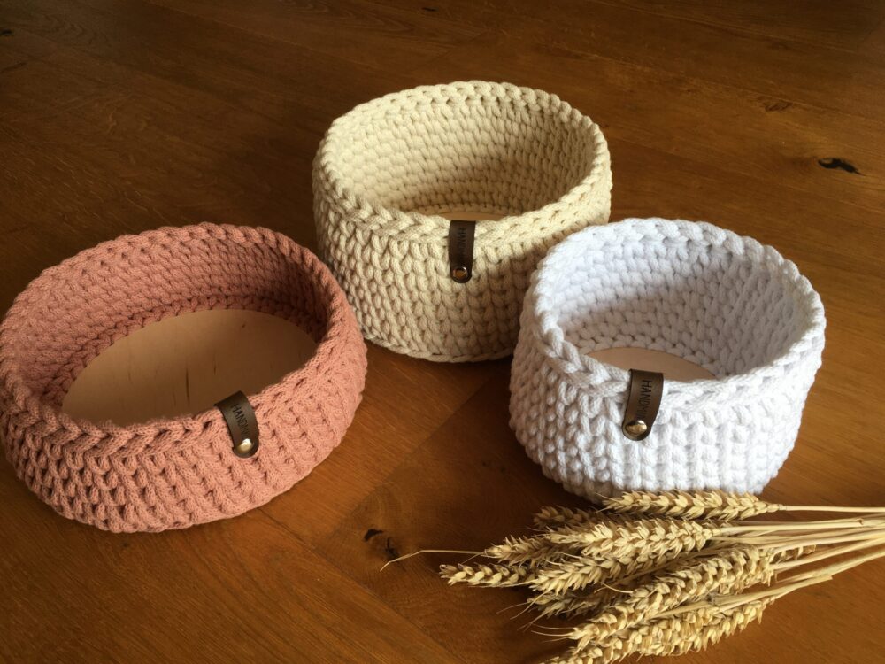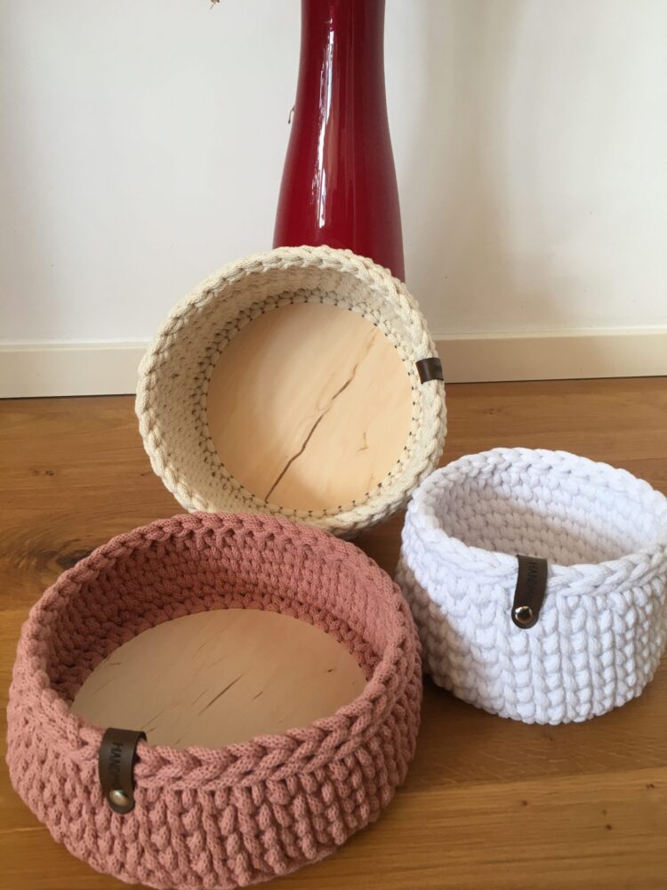 Die Körbchen werden aus 5mm recycelter Baumwollkordel von Bobbiny gehäkelt.