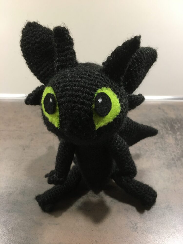 Mit ihm hat 2020 alles begonnen. Darum ist er auch noch nicht so schön. Ohnezahn war meine erste Häkelarbeit seit Jahren und mein erstes Amigurumi und zierte die Schultüte meines Sohnes. Er liebt ihn immer noch.