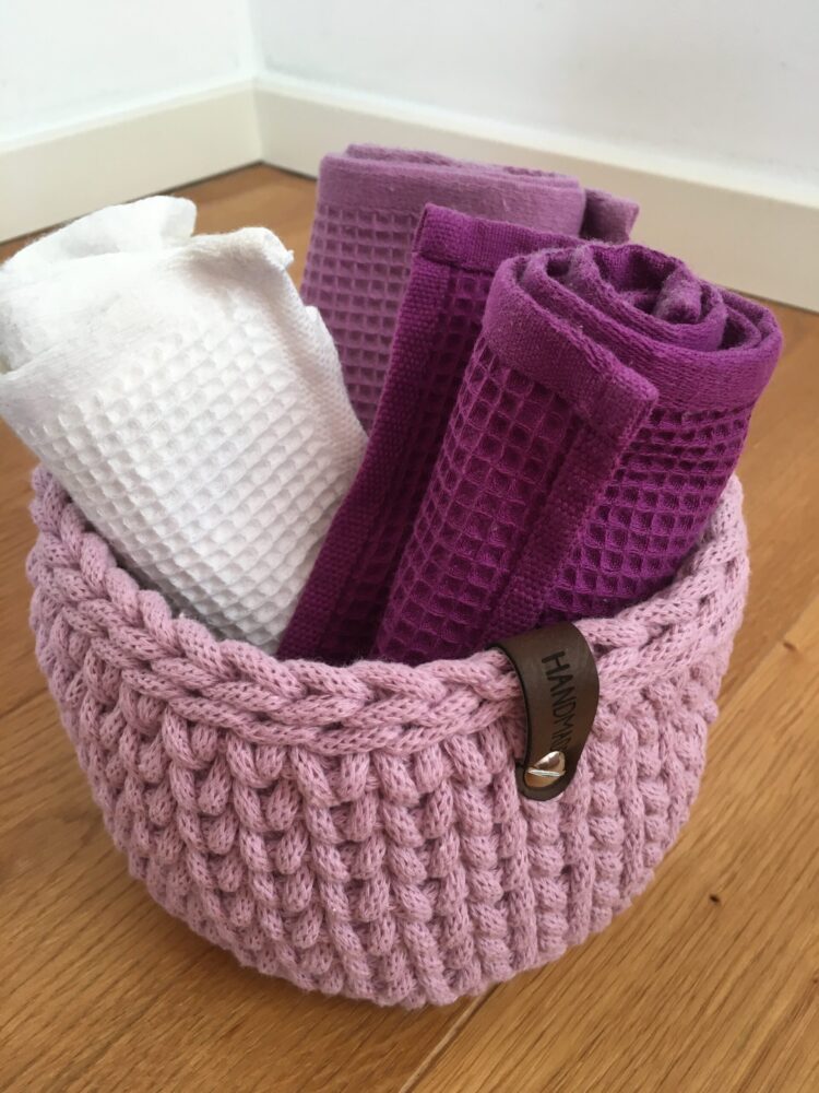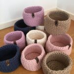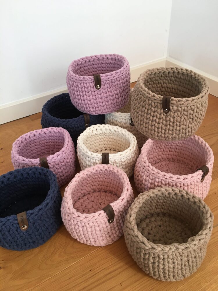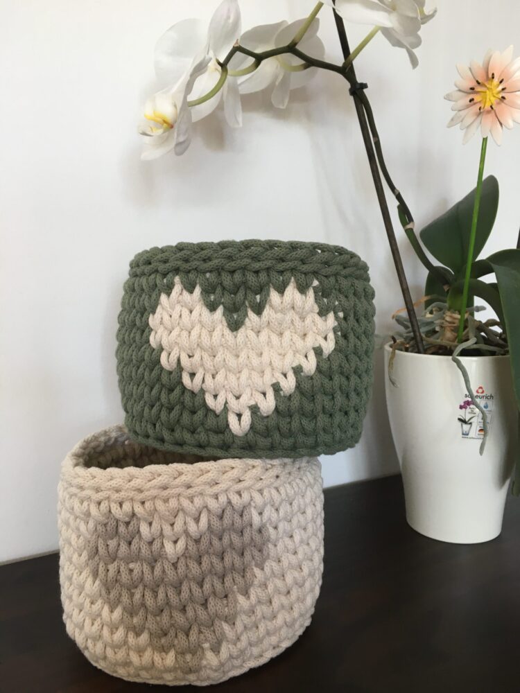Diese schönen Utensilios können als Brotkörbe, Dekokörbchen, Blumenübertopf oder zur Aufbewahrung verwendet werden und sind in jedem Fall ein Hingucker in deiner Wohnung. Die Körbchen werden aus 5mm recycelter Baumwollkordel von Bobbiny gehäkelt.